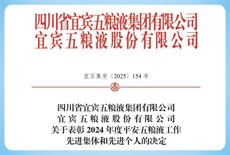 近日,集团2024年平安五粮液建设表彰名单揭晓,王明松等4位同志荣获集团2024年平安工作先进个人称号。这一荣誉不仅是对获奖个人的肯